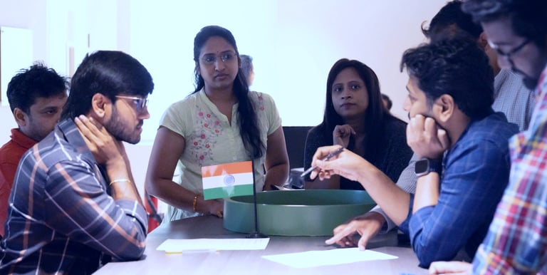 The objective of the J.P. Morgan management development workshop was to equip mid-to-senior leaders with a practical, design-driven approach to communicating ideas clearly, collaboratively, and quickly. Conducted as part of an HR-led leadership initiative, the session introduced low-fidelity prototyping and design thinking as tools for simplifying complex ideas, strengthening cross-functional collaboration, and enabling tangible problem-solving in fast-moving organizational environments.
